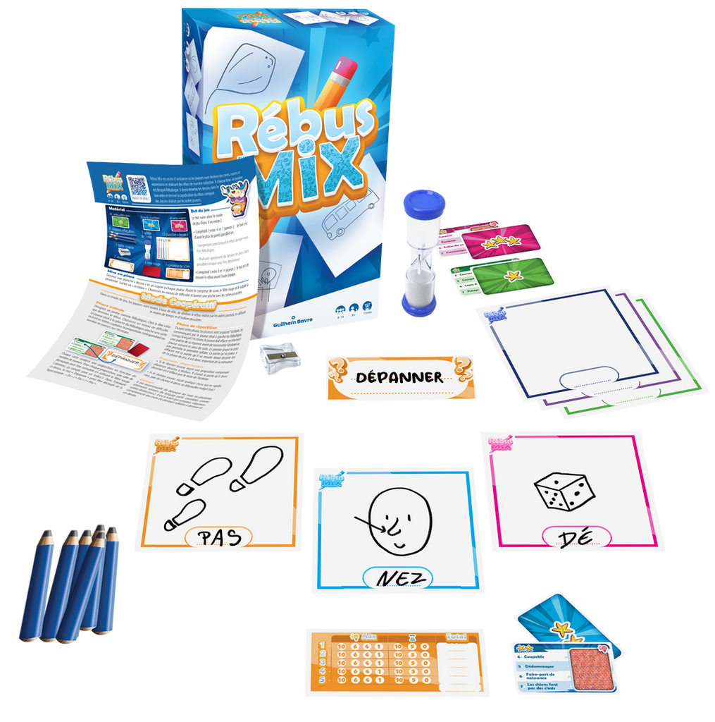 Deux modes de jeu possibles : en mode coopératif, les joueurs se lancent dans une course pour deviner des mots, des noms et des expressions à partir de rébus créés en équipe. En mode compétitif, chaque équipe doit déchiffrer les rébus le plus rapidement possible pour prendre l’avantage. Un défi de rapidité, de réflexion et de coopération qui promet de bons moments de tension et de rires !