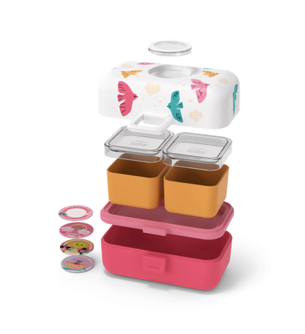 Modulable et ultra compact, le bento dédié aux kids s’adapte à toutes les envies des gastronomes en culottes courtes grâce à ses 3 éléments micro-ondables : son récipient hermétique (450 ml) et à ses deux caissettes (150 ml l’une).
