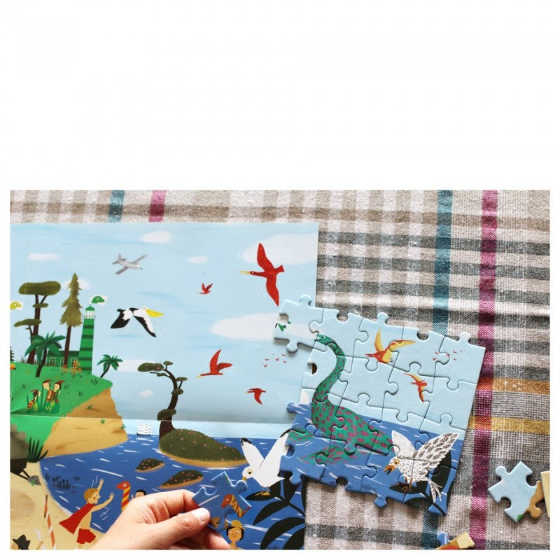 Voyagez à travers le temps avec le puzzle Retour au Jurassique ! 192 pièces à l'image des dinosaures qui peuplaient le monde du jurassique : tyrannosaure, diplodocus, ptéranodons...