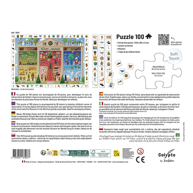 Ce puzzle de dimensions 48 x 33 cm, avec des pièces de 33 x 24 mm, au touché soyeux, est accompagné d'un poster à taille réelle pour guider l'enfant s'il le souhaite.