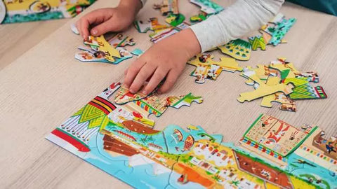 Plongez dans l’univers fascinant des pharaons avec ce puzzle recto-verso en collaboration avec Kididoc ! D’un côté, une image colorée et riche en détails pour explorer l’Égypte ancienne, de l’autre, des infos captivantes pour tout savoir sur Toutankhamon, les momies, le papyrus et bien plus. Avec ses 65 pièces, ce jeu éducatif stimule la coordination, la curiosité et l’esprit logique des enfants. Une manière ludique et intelligente d’apprendre en s’amusant !