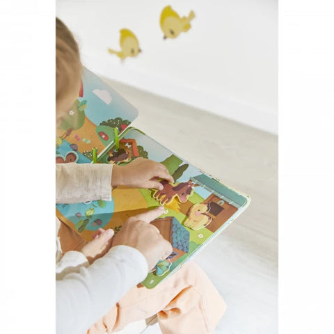 Bienvenue à la ferme ! Ce busy-book de 20 pages captive les enfants dès 3 ans avec des activités ludiques et éducatives. Découvrez la vie à la ferme à travers 158 pièces à placer : animaux emblématiques (poule, vache, cochon, lapin, dindon), habitats et scènes du quotidien. Les illustrations douces et vivantes éveillent la curiosité tout en développant la motricité fine et le vocabulaire. Les plus grands s'initient aux chiffres et à l'alphabet en majuscules et minuscules. Relié par 3 anneaux, ce livre pratique et évolutif grandit avec votre enfant.