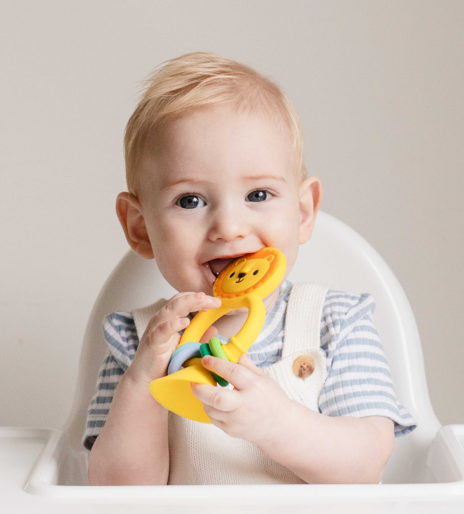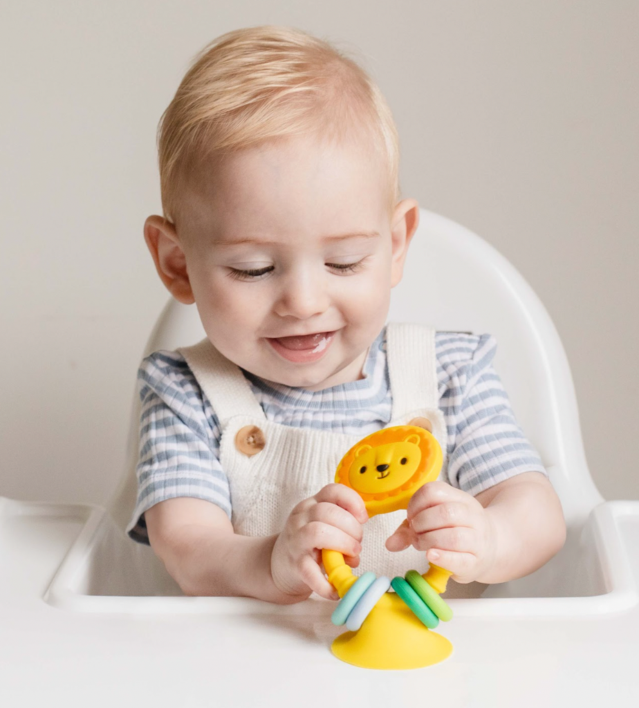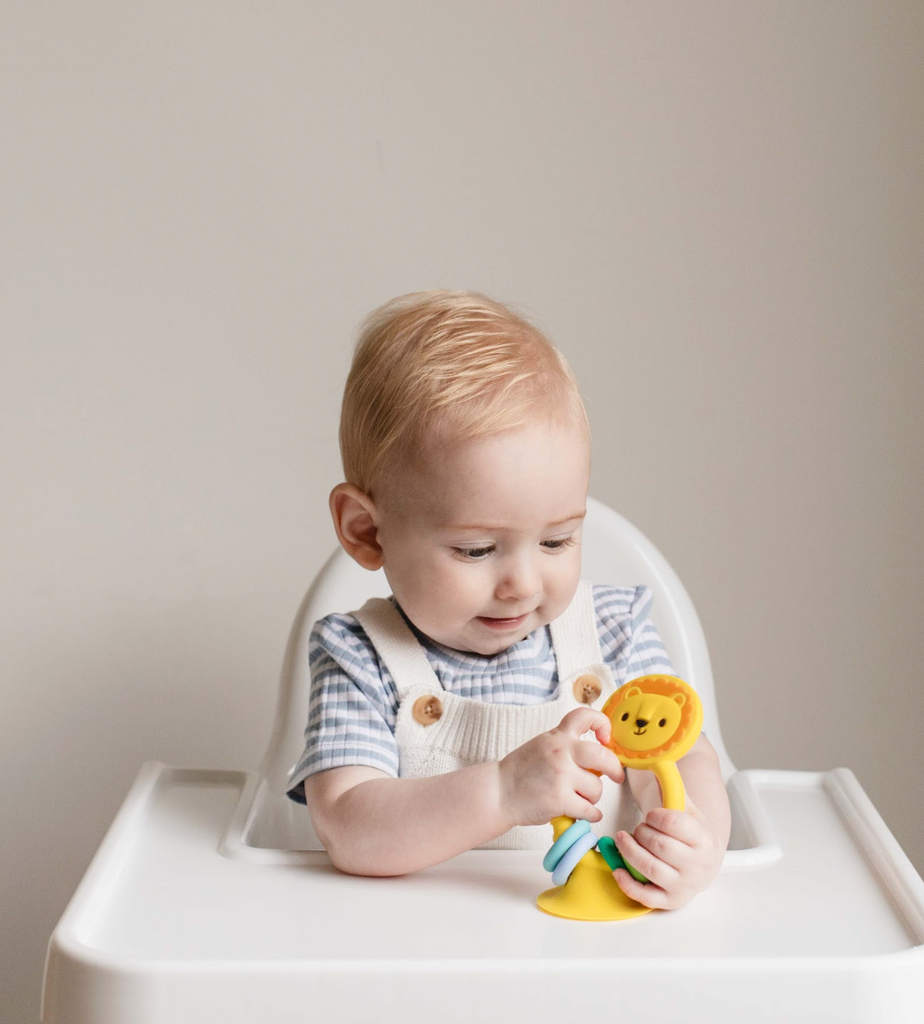 Découvrez le hochet Lion en silicone, le compagnon parfait pour accompagner bébé à l’heure du repas ! Sa base ventouse adhère fermement aux surfaces lisses, restant stable même lors des mouvements de bébé. Conçu en silicone doux et sûr, il offre des textures variées pour soulager les gencives et stimuler les petites mains avec des anneaux colorés à manipuler. Sans BPA ni toxique, ce jouet sensoriel amusant aide bébé à développer sa motricité fine, sa coordination œil-main et comprend la relation cause à effet, tout en s’amusant !
