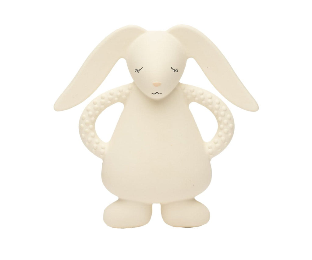 Le lapin de dentition Moonie : un incontournable pour les bébés en pleine poussée dentaire. Sa forme ergonomique et sa matière souple en caoutchouc naturel s’adaptent parfaitement aux petites mains et aux gencives sensibles.