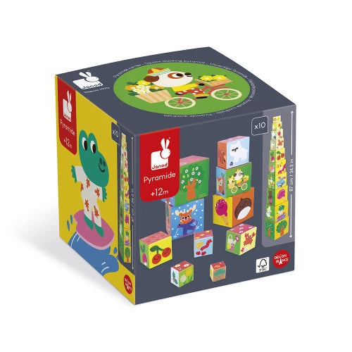 Une pyramide en carton constituée de 10 cubes encastrables. Sur le thème des saisons, on retrouve sur chaque face les animaux, la faune et la flore relative à celles-ci. Empilez et orientez les cubes selon les saisons !