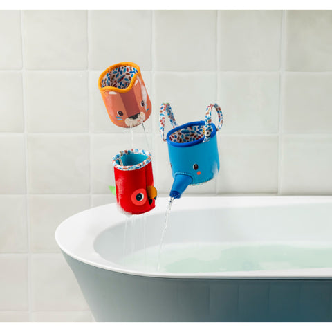 Ce set de 3 gobelets de bain invite les tout-petits à des jeux d’eau amusants dès 6 mois.