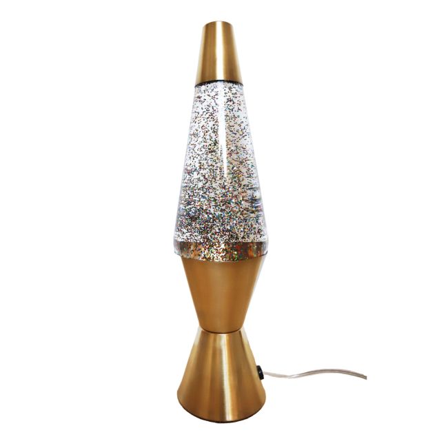 La lampe à lave revient en doré et remplie de paillettes !
