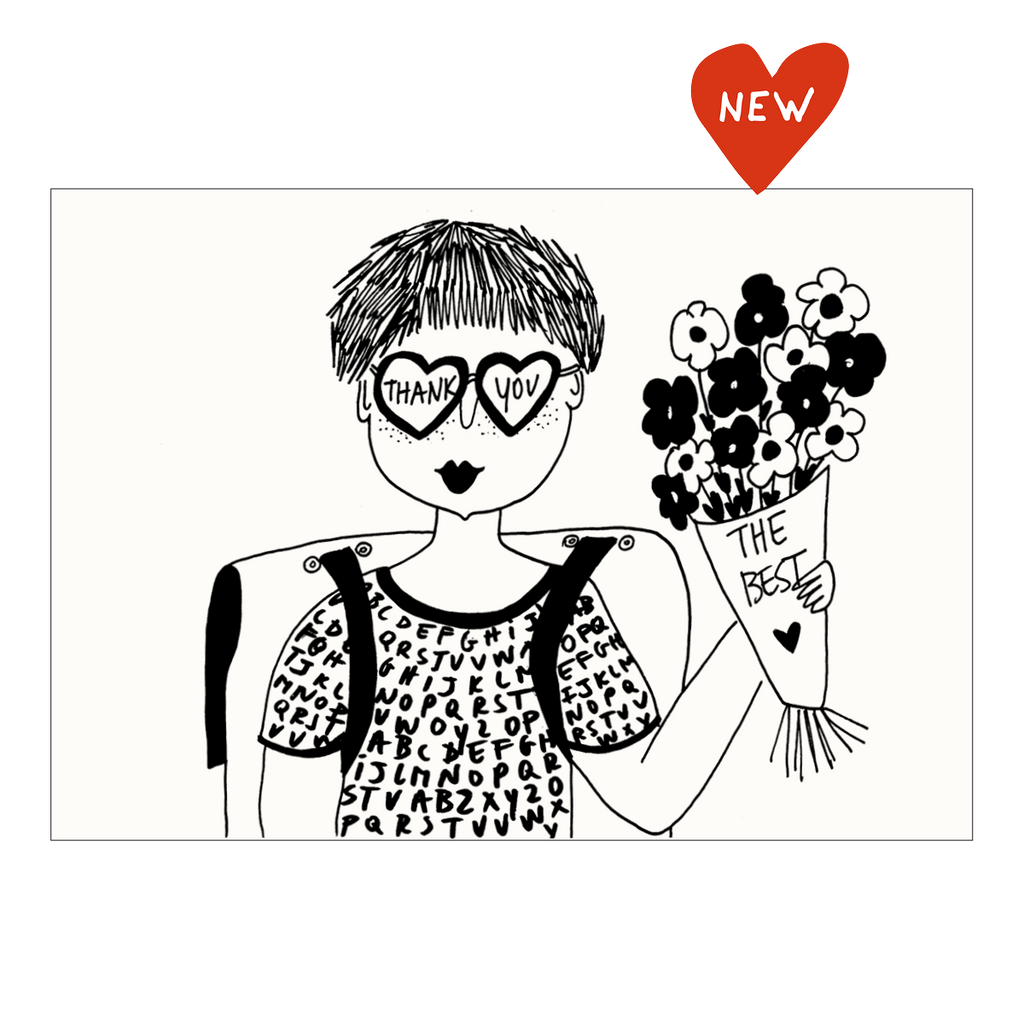 Carte sur papier blanc avec illustration d'Helen b, incluant une enveloppe 100% recyclable.