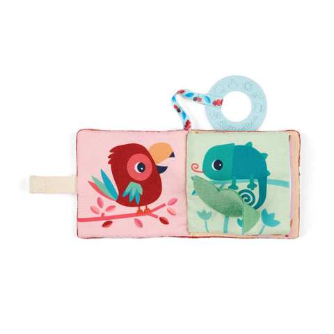 Jack le lion vous invite à explorer la jungle ! Cet imagier en tissu doux est conçu pour les bébés dès 6 mois. Au format pratique de 10 x 10 cm, il accompagne bébé à la rencontre de perroquets, caméléons, éléphants et autres créatures fascinantes. Chaque page offre des textures variées, des détails en relief et des matières à découvrir du bout des doigts. Un livre sensoriel idéal pour éveiller la curiosité, développer le toucher et partager des moments magiques en famille.