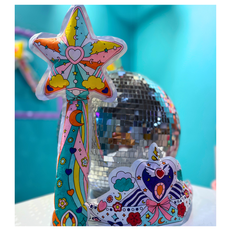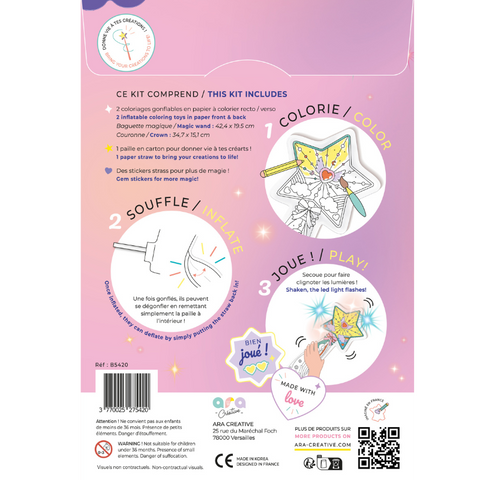 Coloriages Gonflables – 1 baguette magique lumineuse & 1 couronne
