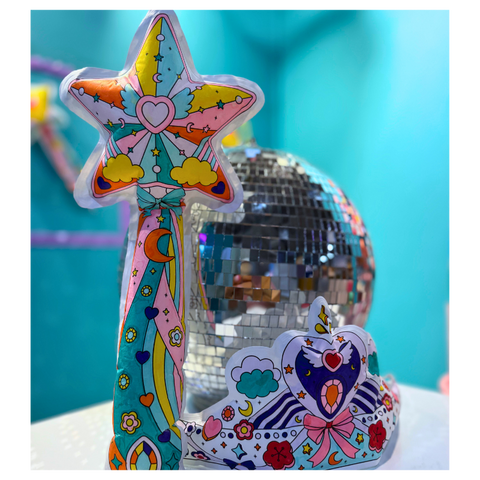 Entrez dans un univers de contes de fées avec le duo magique des Créarts : la Baguette Magique Lumineuse et la Couronne Strass