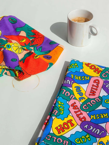 Deux torchons en coton aux illustrations de fruits éclatantes. Parfaits pour apporter une touche de marché fermier coloré à votre cuisine ! Ces torchons vibrants et gais transforment chaque moment en cuisine en une célébration joyeuse. Idéals pour sécher la vaisselle ou décorer votre espace culinaire avec style. Un duo incontournable pour les amateurs de décoration chaleureuse.
