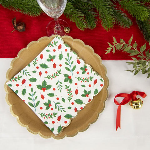 Apportez une touche d’élégance festive à votre table avec ces serviettes blanches festonnées 33x33 cm ! Leur galon doré et le motif exclusif houx illuminent vos repas de fête, tout en assurant une douceur agréable avec leur tissu de 18 g. Le lot de 16 est parfait pour partager des moments chaleureux en famille ou entre amis. 🎄✨