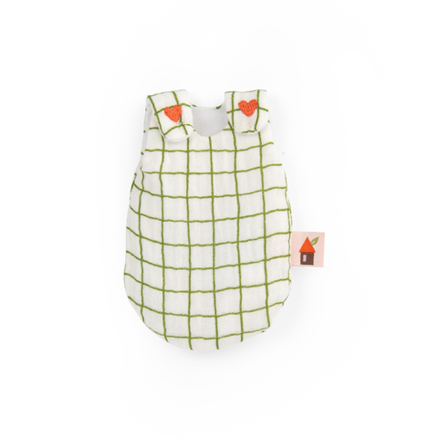 Dans sa jolie gigoteuse à carreaux amovible à scratchs, bébé Nine aime déjà les histoires. Avec ses jambes articulées, il est possible de l'asseoir pour lire. Douce poésie ou livre d'aventure, peu importe tant qu'elle peut rêver et s'évader !