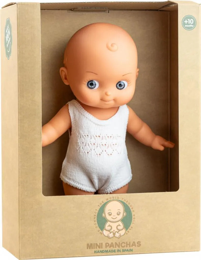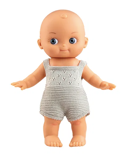 Cette adorable poupée Mini penchas de 28 cm est confectionnée en vinyle souple et doux au toucher. Elle est habillée d'une petite barboteuse en crochet. Ses articulations au niveau de la tête, des épaules et des jambes permettent une grande liberté de mouvement pour des jeux créatifs et variés.