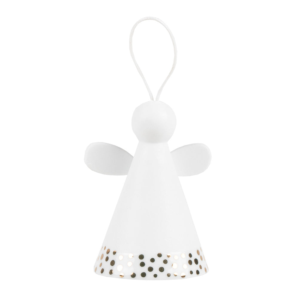 Agrémentez votre sapin de Noël avec cet ange clochette, orné de points dorés. Placez cet ange sur une étagère de votre maison et sa clochette vous apportera bonheur à chaque fois que vous l'entendrez !