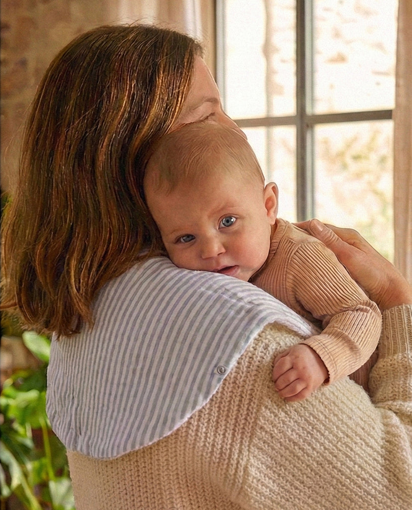Pratique et malin, ce bavoir 2 en 1 s’utilise aussi bien en poncho pour bébé qu’en protection d’épaule pour le parent. Sa forme ergonomique couvre parfaitement les vêtements pendant le repas ou l’allaitement et se pose ensuite sur l’épaule. Confectionné en double gaze de coton et en éponge bambou toute douce, il allie confort, style et facilité d’entretien. Réglable par boutons pressions. Dimensions : 59 x 25 cm.