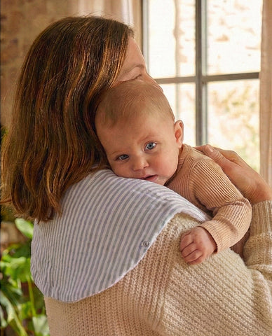 Bavoir 2 en 1 (poncho/épaule) rayé vert de gris