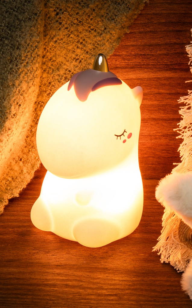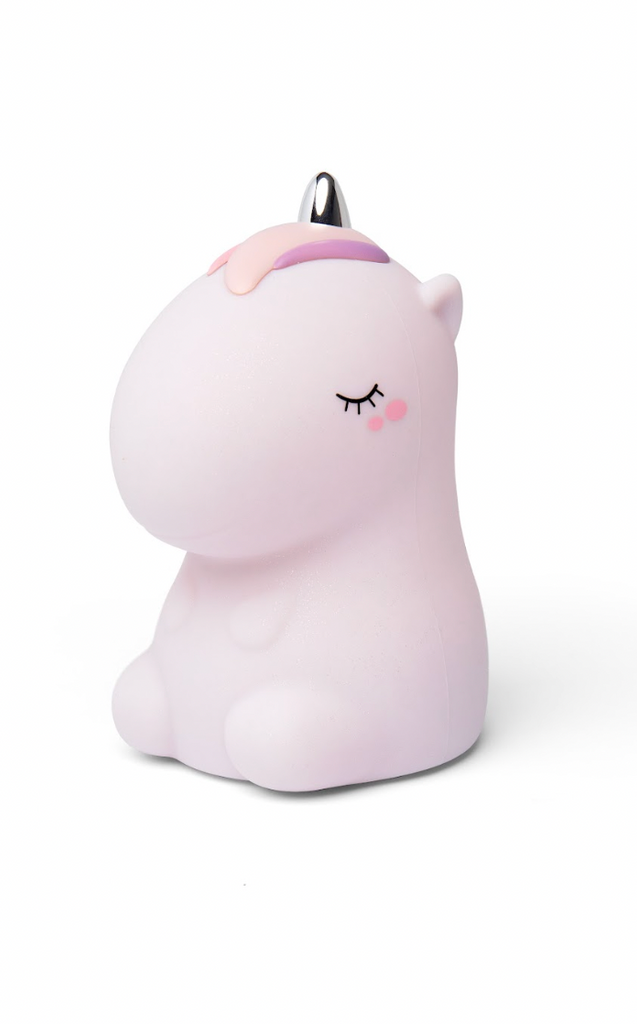 Égayer la chambre de votre enfant avec la veilleuse licorne rose paillettes de Little L. Une veilleuse en silicone qui s'allume grâce à sa télécommande joliment colorée. Allumez-la et laissez-vous envelopper par sa douce lumière blanche ou bien amusez-vous avec le mode "Arc-en-ciel" et ses couleurs changeantes. Pratique et très légère, cette veilleuse sans fil vous accompagnera partout grâce à son port USB et ses 6 à 14 heures d'illumination!