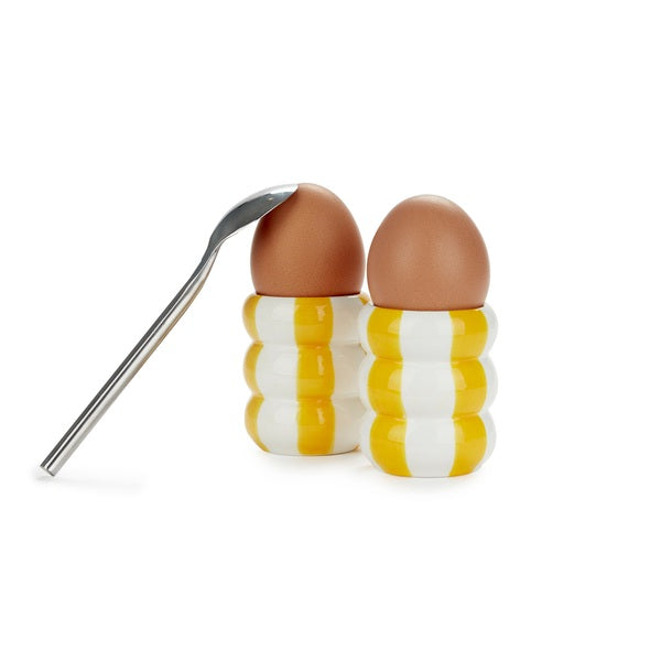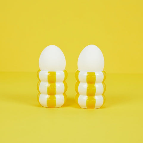 Découvrez ces adorables coquetiers en céramique inspirés des bouées de plage ! 🏖️ Peints à la main, chaque paire est unique et apporte une touche estivale à votre table. ☀️ Dotés de patins antidérapants pour une stabilité optimale, ils allient design ludique et fonctionnalité. Parfaits pour les amateurs d'œufs à la coque et les passionnés de décoration colorée ! 🌊 Une collaboration exclusive avec la marque belge Qué Rico, idéale pour offrir aux amoureux de l'été. 💛