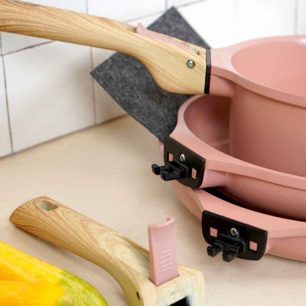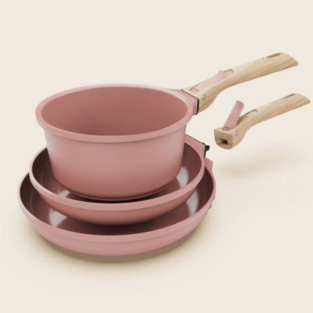 Découvrez la batterie de cuisine amovible L'Incroyable, le trio indispensable pour une cuisine moderne et responsable. Ce pack complet réunit une casserole 20 cm, deux poêles 24 et 28 cm, accompagnées de poignées détachables et de feutrines de protection. Fabriquée en métal 100% recyclé avec revêtement minéral anti-adhérent sans PFAS, elle allie performance et légèreté. Cuisinez avec moins de matière grasse, nettoyez sans effort au lave-vaisselle, et profitez d'une surface qui ne se colore pas. Assortie aux teintes signature de la gamme, cette batterie conjugue praticité et engagement écologique.