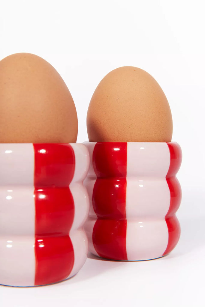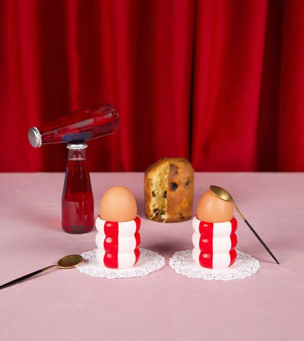 Duo de coquetiers en céramique rouge et rose pour des petits-déjeuners pleins de style ! 🍳 Ces pièces modernes et raffinées (6x5,5cm) allient design épuré et fonctionnalité. Parfaits pour les amateurs de décoration avec du peps, ils transforment chaque matin en moment gourmand. Lavage à la main. Livré dans un packaging ultra-résistant pour une arrivée sans casse. ✨💕