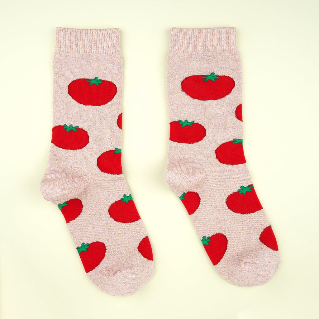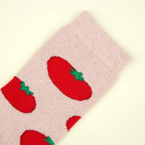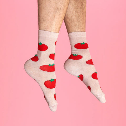 Voici les chaussettes tomates, la star de l’été à vos pieds ! Avec leur motif gourmand et leurs paillettes scintillantes, elles mettent du pep’s et du fun dans vos pas. Parfaites pour célébrer la tomate sous toutes ses formes, ces chaussettes Coucou Suzette ajoutent une touche de folie et de fraîcheur à votre look. À porter sans modération pour briller en toute légèreté !