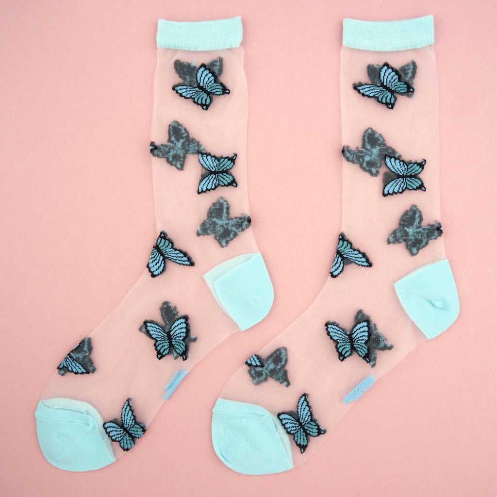 Enfilez ces chaussettes originales et laissez-vous émerveiller par les beaux jours avec des papillons bleus virevoltant à vos pieds. Ajoutez une touche de magie à votre journée avec ce petit accessoire.