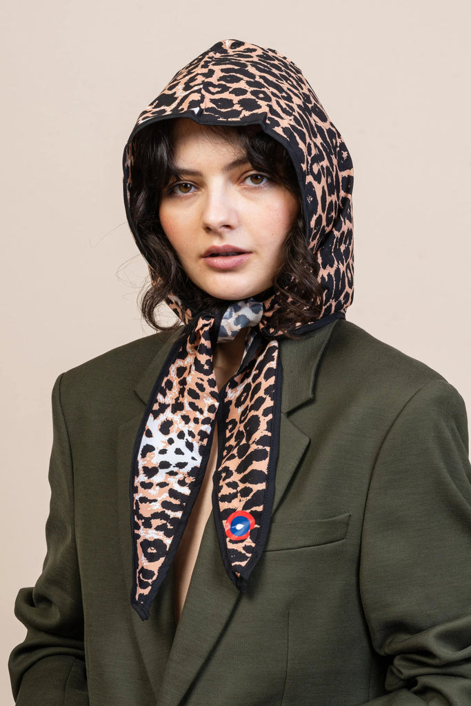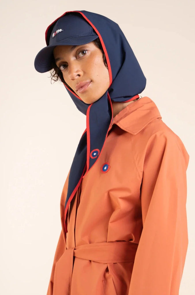 Notre couvre-chef adopte le rôle d’une capuche imperméable et nomade. Ultra-pratique, elle se range dans sa pochette pour vous garder au sec même après avoir été utilisée. Design et tendance, ses bords contrastés la rendent chic et structurée.