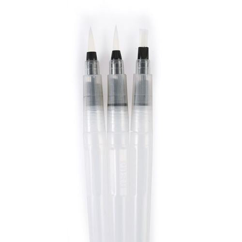 2 ronds et 1 plat. Pour peindre en plein air avec sa palette d'aquarelle ou simplement étaler la couleur de crayons aquarellables, ces pinceaux à réservoir sont parfaits !