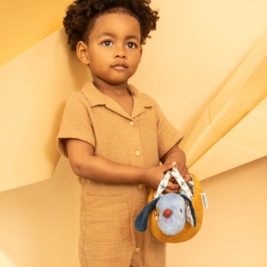Avec ses poignées, on peut transporter Jules et Jeanne partout où on le souhaite ! Une véritable peluche sonore douce, originale et charmante !