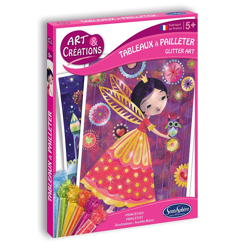 A l'aide des tubes de paillettes et d’illustrations prédécoupées et préencollées, les enfants pourront facilement donner vie à de magnifiques tableaux, sans se salir ! Il leur suffira d’agrémenter différents détails de l’illustration en suivant quelques étapes :