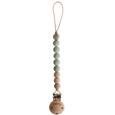 Fait de bois et de silicone, cet attache-tétine vous permettra de toujours garder la sucette de votre petit bout à portée de main.