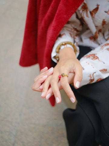 Bague ajustable en porcelaine et laiton doré à l’or fin. Métal certifié sans nickel et sans risque d’allergie.
