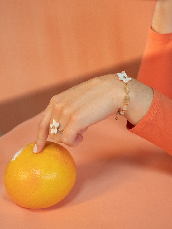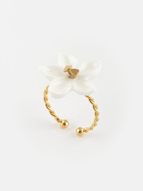 Bague ajustable en porcelaine et laiton doré à l’or fin 18 carats. Métal certifié sans nickel et sans risque d’allergie.
