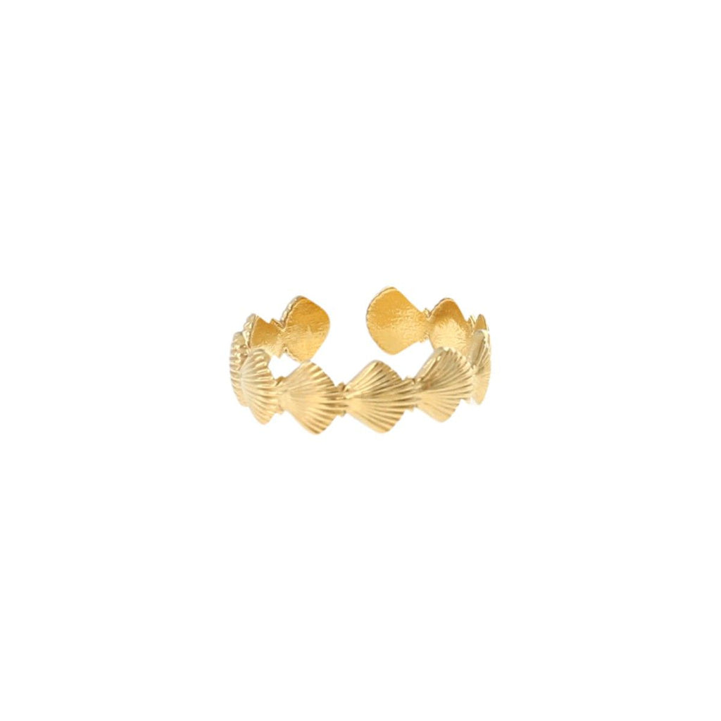 L’accessoire parfait pour celles qui rêvent de soleil toute l’année, la bague coquillage dorée en acier inoxydable est composée d’une rangée de petits coquillages finement travaillés qui entourent entièrement le doigt, elle fait le plein de style avec un esprit bord de mer assumé… sans le sable entre les orteils.