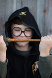 Cette baguette ondulée en plastique est dotée d'un manche brun foncé et d'une pointe inspirée du bois. Avec quelques mouvements, votre enfant pourra effectuer une variété de sorts magiques.