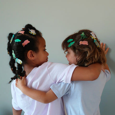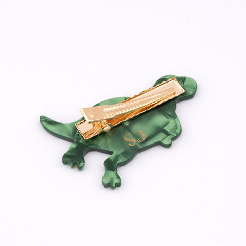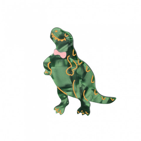 Affichez un style original avec cette barrette dinosaure Coucou Suzette. Ce beau dino crâneur aux tons verts, roses et dorés est doté d'un nœud papillon qui ajoutera une touche amusante à votre coiffure. Parfait pour les enfants qui veulent se démarquer à la cour de récré !