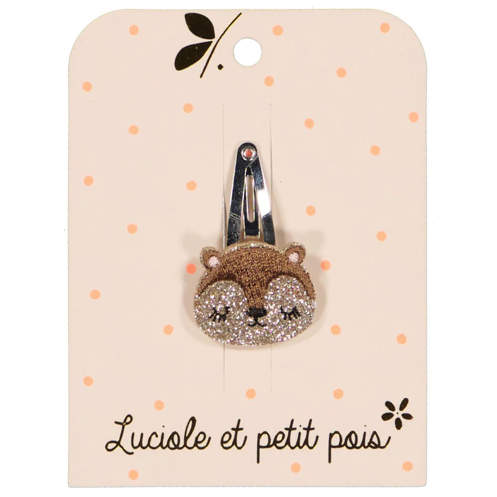 Barrette cheveux soigneusement cousue sur une pince clic clac de 4 cm.