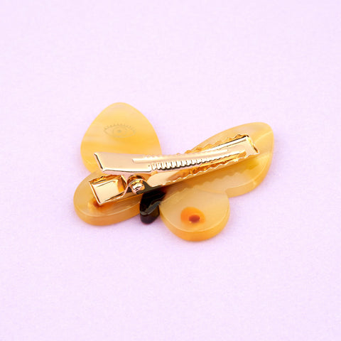 Un papillon jaune prêt à s'envoler dans vos cheveux pour apporter une touche printanière et joyeuse à vos coiffures ! Ses ailes texturées et ses motifs symétriques hypnotisants apporteront une touche unique à votre look. Laissez-le vivre sa meilleure vie sur votre chevelure !