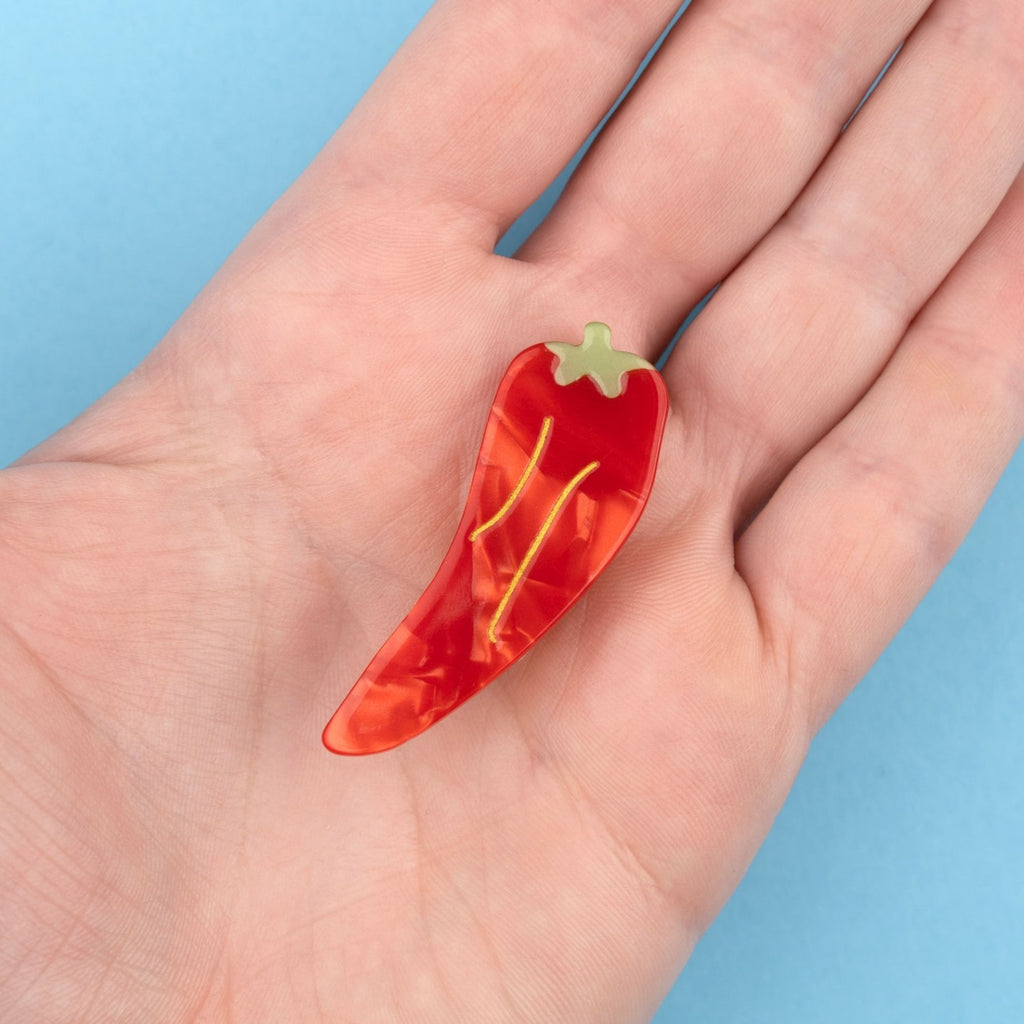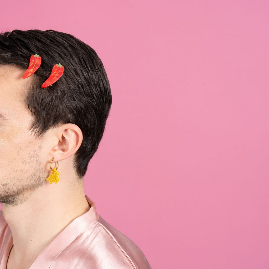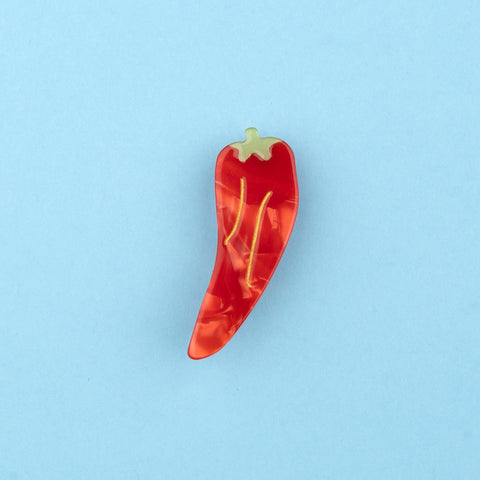 Ajoutez une touche de feu et d'audace à votre coiffure avec la barrette Piment ! Fabriquée en acétate et ornée de détails dorés, elle maintiendra en place vos mèches rebelles avec style. Le petit piment rouge apportera une touche de couleur et de chaleur à vos looks, pour un effet détonnant !