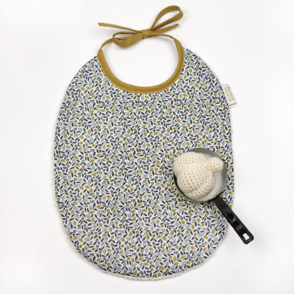 Un coté en éponge pour éviter toutes les catastrophes et un coté en si joli tissu Liberty pour faire joli... Des couleurs gourmandes et des motifs délicats ... Ce grand bavoir fera un très joli cadeau de naissance !