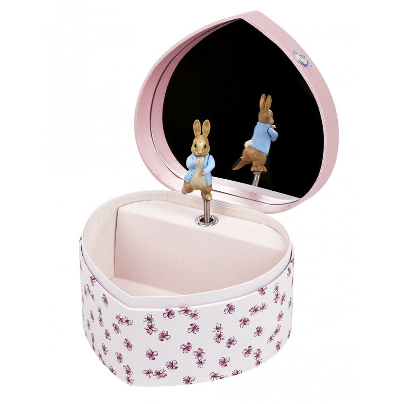 UNE BOÎTE MUSICALE POUR RANGER SES BIJOUX : Cette boîte à musique en forme de Coeur émerveillera une jeune fille qui y rangera ses bijoux & secrets. Actionnez la manivelle et la figurine de Pierre Lapin s’anime comme par magie au son de la musique ! Peter Rabbit (The Tale of Peter Rabbit) est un livre pour enfants écrit et illustré par l'écrivaine anglaise Beatrix Potter au début du 20è siècle : Pierre Lapin est un peu désobéissant et rebelle avec les adultes, mais il est courageux, plein d'imagination et entouré d'amis fidèles.
