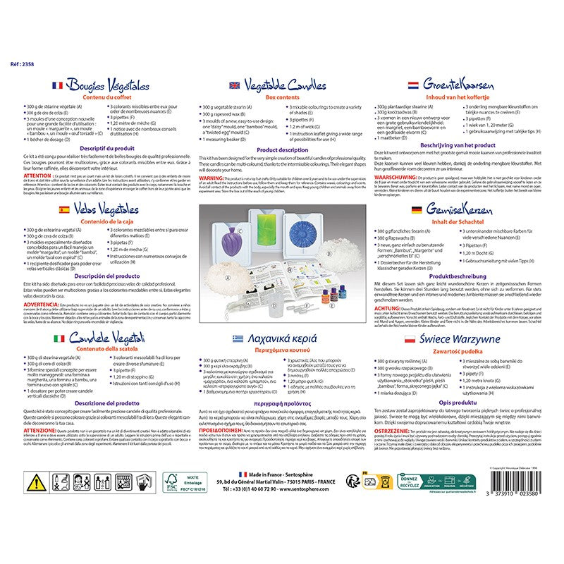 Ce kit créatif « bougies végétales » vous permettra de réaliser des bougies avec de la stéarine d’origine 100% naturelle. Le résultat est facile à obtenir puisque la cire fond rapidement dans un bain-marie.