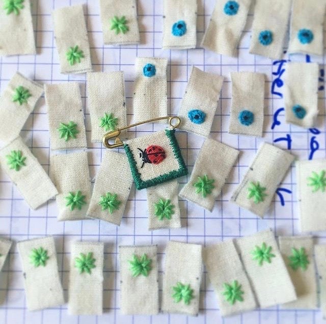 Brodée à la Main sur une Toile de Coton Écrue