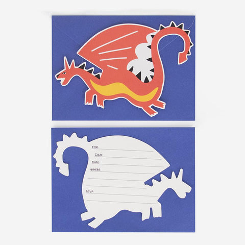 Château fort, dragon, bouclier, épée, il est temps de revêtir son heaume et son armure pour aller délivrer la princesse, la reine et le roi ! Vous organisez un anniversaire chevalier ? Ou une fête Game of Thrones ? À donner la récré ou à glisser dans les boîtes aux lettres, ces jolies invitations en forme de dragons seront parfaites !