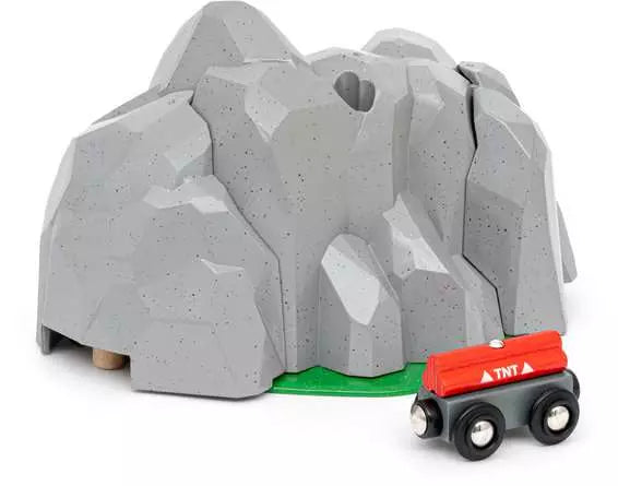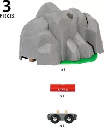 BOUM ! Faites exploser la montagne et traversez-la en train avec le 36044 Tunnel Dynamite. Ce grand coffret de montagne avec finition roche réaliste, complète parfaitement tout circuit BRIO et cache un chemin de fer à intérieur. Insérez la TNT dans le trou pour faire exploser la montagne et révéler le passage secret. Fabriqué avec des pièces en plastique et en bois solides, ce tunnel pour train s’intègre facilement aux autres jouets BRIO World grâce au rail en bois courbé qui le traverse.