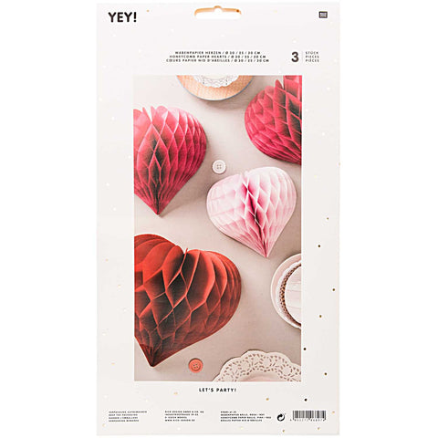Set de 3 coeur en nid d'abeille pour décorer votre pièce de fête !