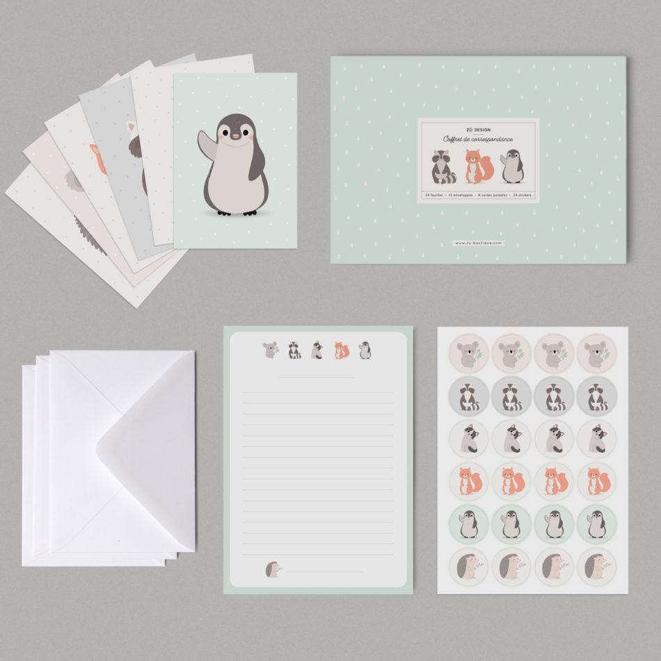 Ce coffret complet pourra servir à écrire une carte ou une lettre glissée dans sa jolie enveloppe fermée par un petit sticker.