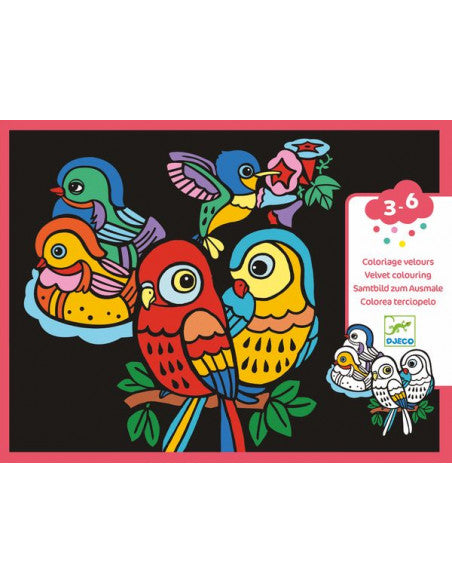 Colorie 4 bébes oiseaux en velours ! Parfait pour ne pas dépasser.